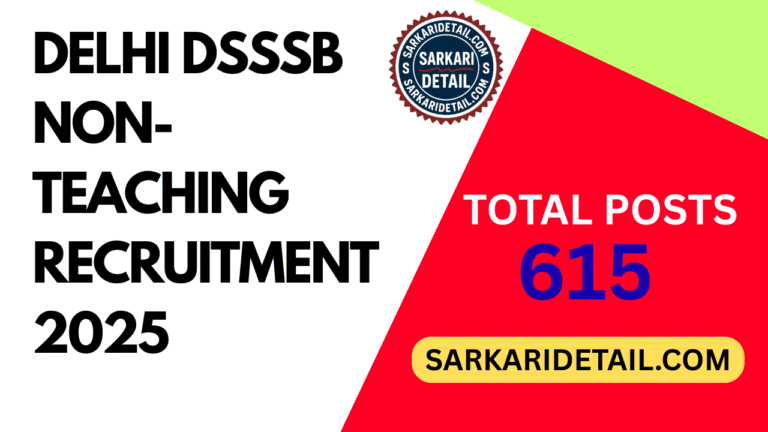 Delhi Subordinate Services Selection Board (DSSSB) – The Delhi Subordinate Services Selection Board (DSSSB) has issued the official notification for the Delhi DSSSB Non-Teaching Recruitment 2025. This recruitment offers 615 vacancies across various posts. Candidates are advised that admit cards, answer keys, and result updates will be available on SarkariDetail.com. Prior to submitting the application form, applicants must thoroughly read the complete official notification and ensure that all required documents are verified and uploaded in the prescribed format.